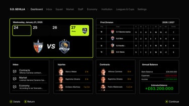We're not just offering an alternative to Football Manager; we're offering a different experience: that of being a football tycoon, making strategic decisions from the couch, controller in hand, like in the old days. Business strategy, long-term vision, and decisions that affect an entire institution, all without losing the essence of what makes a video game great: making you enjoy.